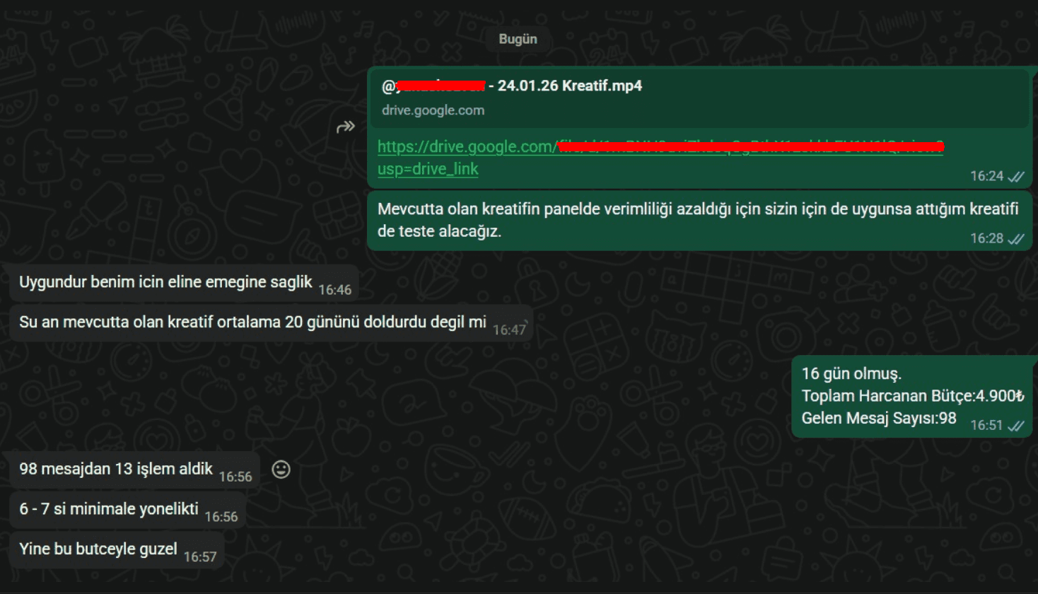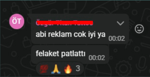 5 ay boyunca kesintisiz yürütülen tek reklam videosu ve tek kampanya ile 1.784 gerçek mesaj elde edildi.